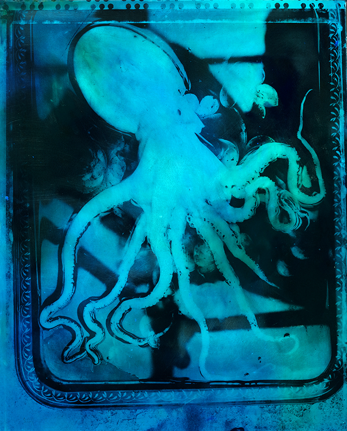 Les pigments s’imprègnent selon que la gélatine les retient plus ou moins. Les couleurs se croisent. Il laisse aller. La maîtrise est certaine, mais pas totale. La reprise du travail sur une zone pour l’obtention du résultat escompté est stoppée ou détournée. Si la chimie donne un résultat qui le surprend, il l’adopte et la suit. Il parle d’un pourcentage « d’intervention divine », et ses œuvres entre peinture et photographie ont une présence, si ce n’est divine, pour le moins remarquable, souvent saisissante.