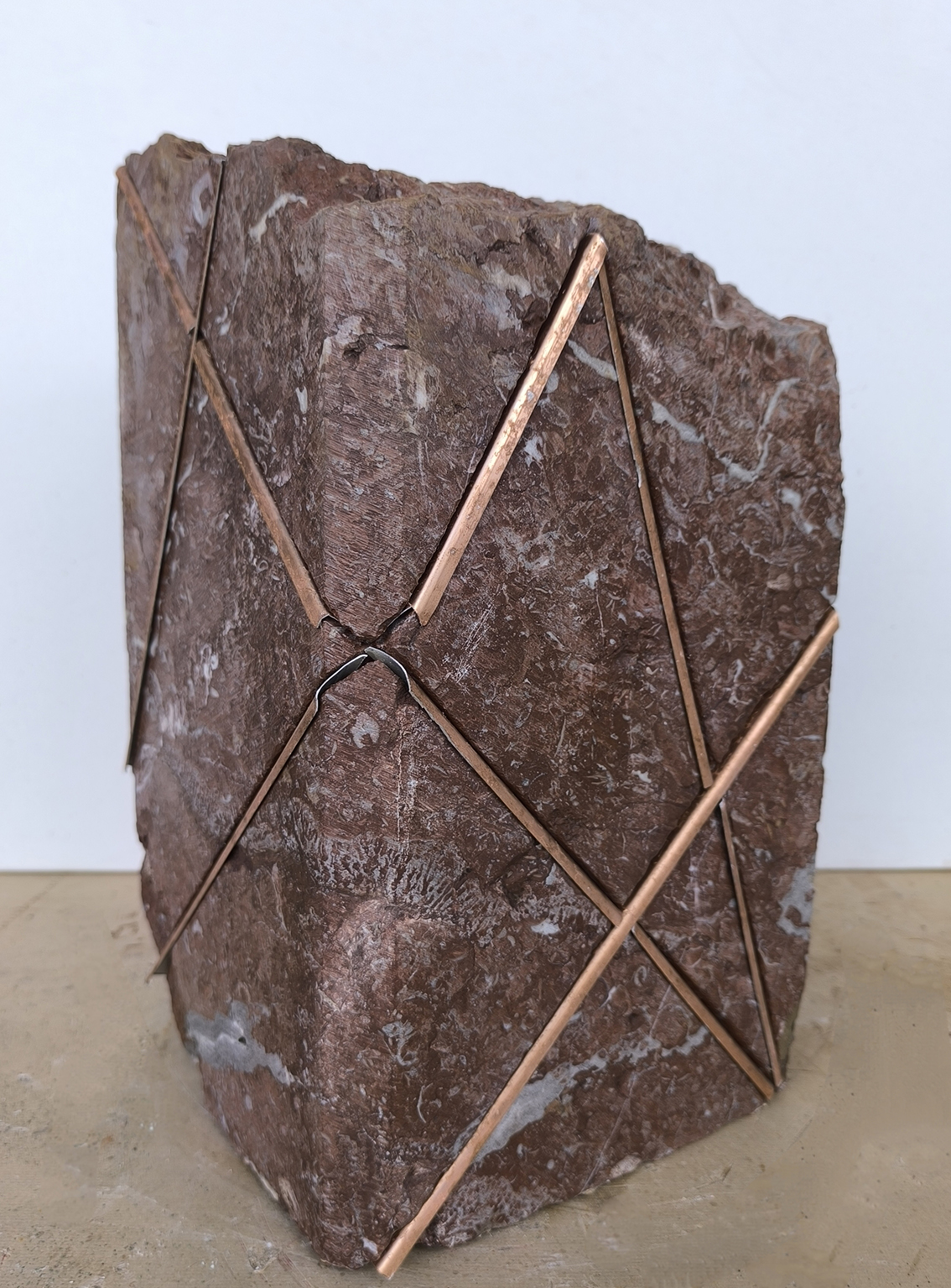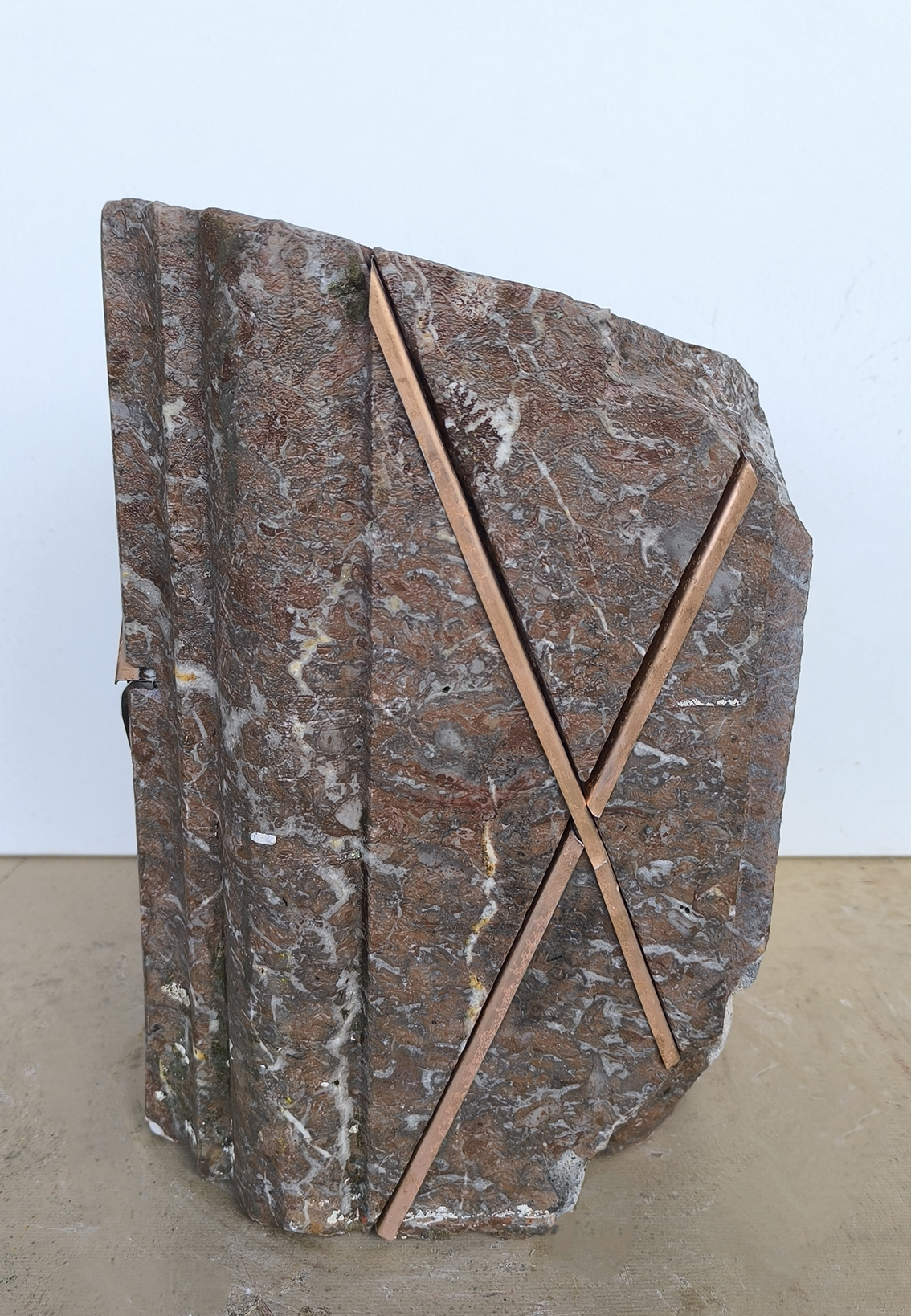 Ma spécialité en tant qu’artiste est principalement axée sur la sculpture en pierre naturelle et en acier. Le fait de vouloir développer ma créativité à travers la pierre et l’acier, vient de mes origines paternelles, du temps passé à Bilbao et de mes séjours d’enfance dans la région avec la pierre, en raison de cette relation intime avec elle. Lors de mes visites et promenades dans mes carrières, j’observe et je contemple les formations pétrographiques, leur composition, leurs couleurs, leurs textures, leurs formes…, c’est là que commence la rencontre avec la matière…, j’ouvre un dialogue avec elle, je la touche et la caresse…, elle me transmet son énergie et je lui transmets la mienne…, je demande la permission (à l’univers) de l’emporter avec moi, …. c’est là que commence le processus d’inspiration…