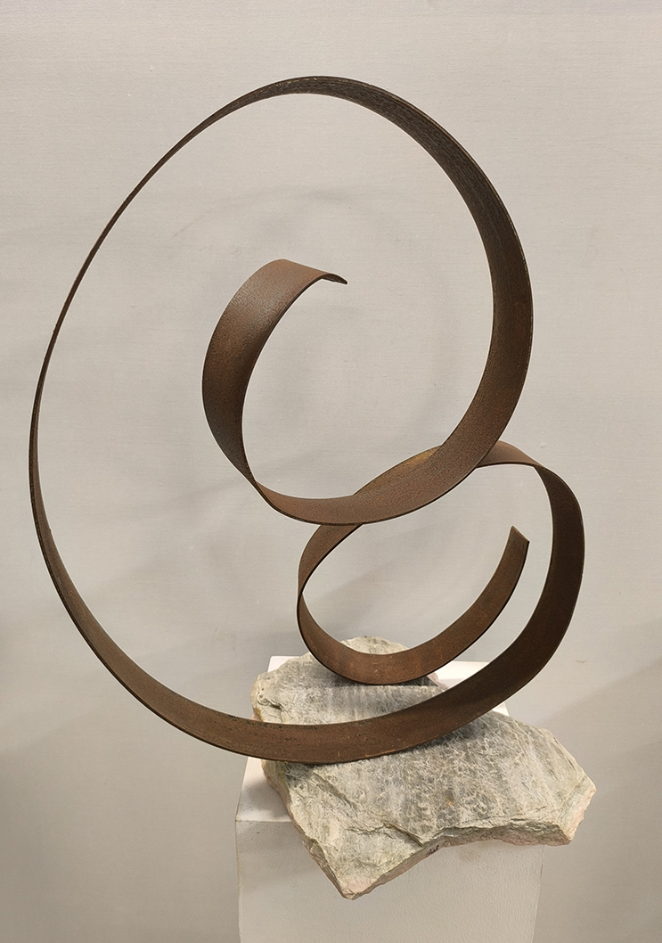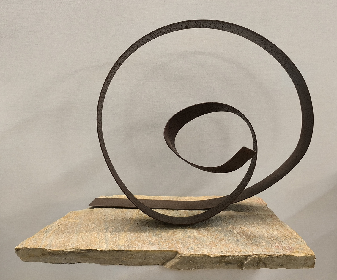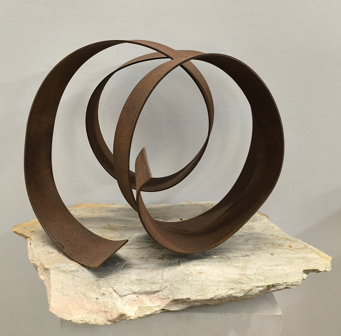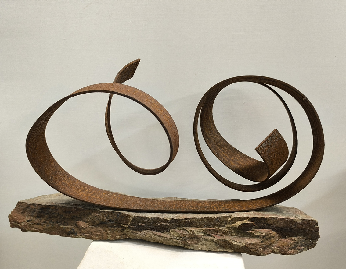 I create a vast universe of sculptures in natural stone, corten steel, and painted iron. Guided by my imagination, I follow the path traced by models and preliminary drawings, which orient the conception of the contemporary sculptures I strive to achieve.