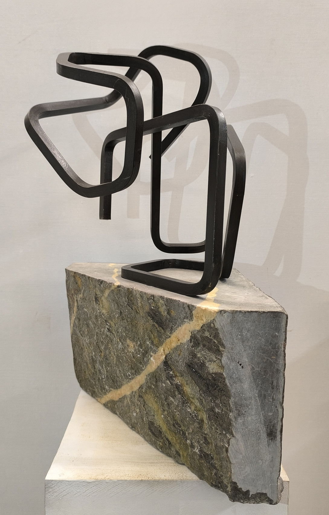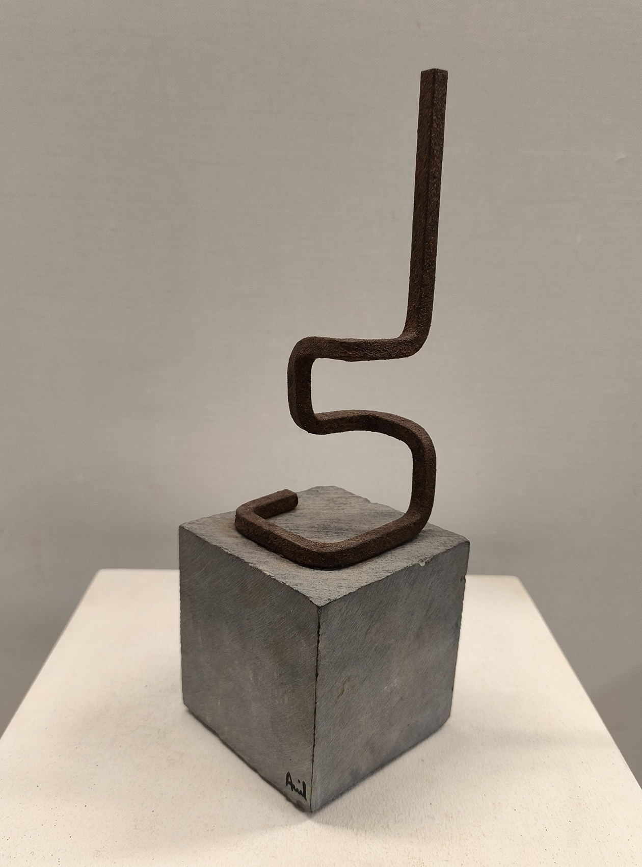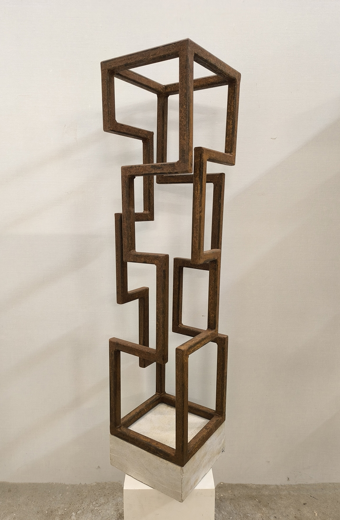 I create a vast universe of sculptures in natural stone, corten steel, and painted iron. Guided by my imagination, I follow the path traced by models and preliminary drawings, which orient the conception of the contemporary sculptures I strive to achieve.